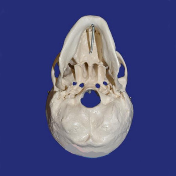 Модель изготовлена из лёгкого и прочного ПВХ. В отличии от натуральных черепов, модель долговечна и не требует каких-либо специальных условий работы с ней и хранения.