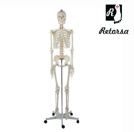 Модель скелета взрослого человека, выполненная в натуральную величину (высота 180 см). Состоит из анатомически точных моделей черепа (съёмная), позвоночника, грудной клетки, таза, верхних и нижних конечностей (съёмные). Модель можно закрепить на роликовой стойке.