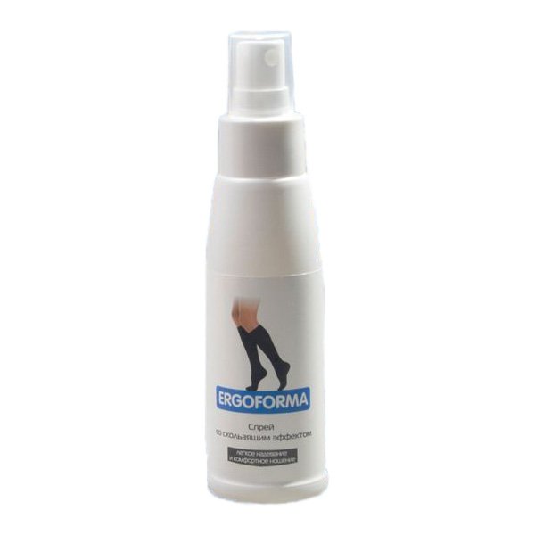 Спрей со скользящим эффектом является средством двойного действия, которое упрощает процесс надевания компрессного трикотажа, создавая лёгкое скольжение в процессе надевания. Эффективные компоненты, входящие в состав спрея, создают деликатное соприкосновение ткани и кожи. Также спрей для ног заботиться о коже и суставах.