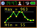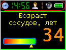 По окончании теста вы можете посмотреть результаты, последовательно нажимая на кнопку прибора. На рисунках - примеры вывода значений возраста сосудов и уровня стресса. |