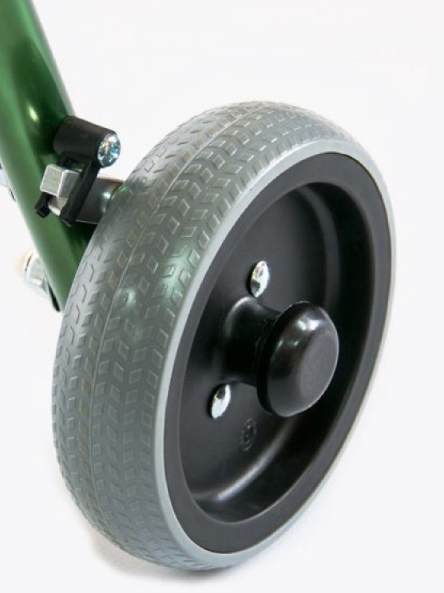 • передними колесами с фиксатором поворотного механизма и стояночным тормозом