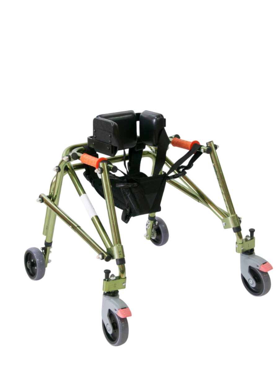 Ходунки на четырех колесах реверсивного типа предназначены для детей с инвалидностью, страдающих различными формами ДЦП. Они помогают исправить нарушения осанки и неправильное положение стоп, а также способствуют удержанию равновесия при ходьбе и стоянии.