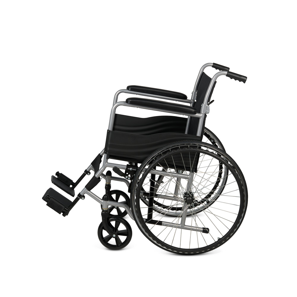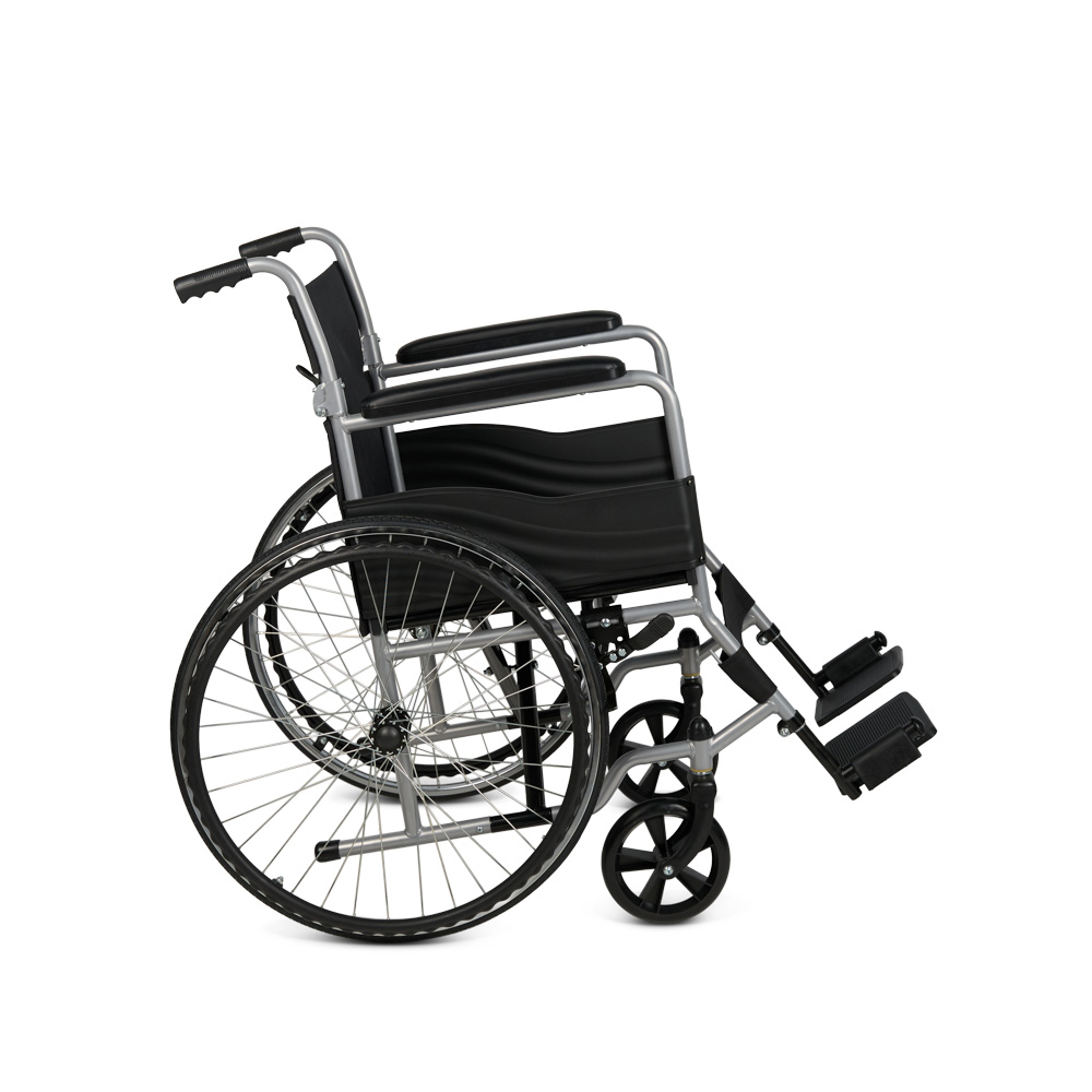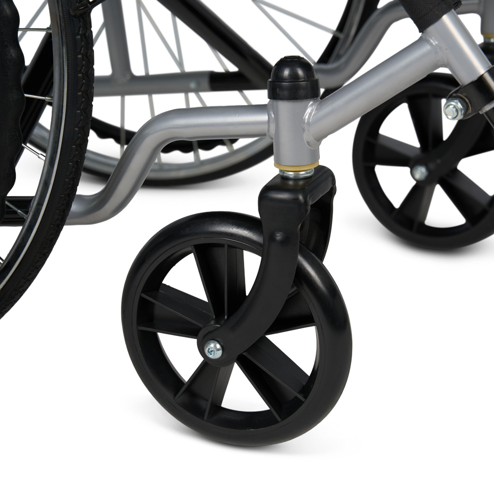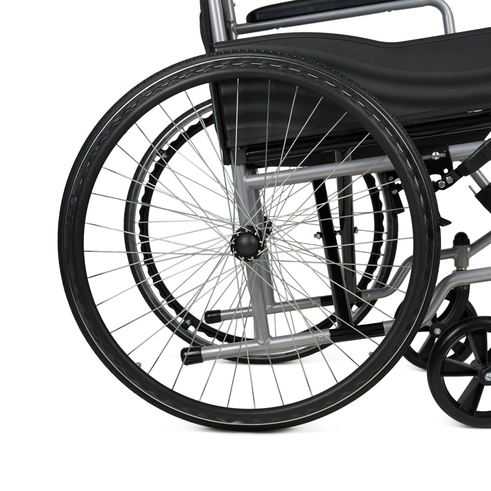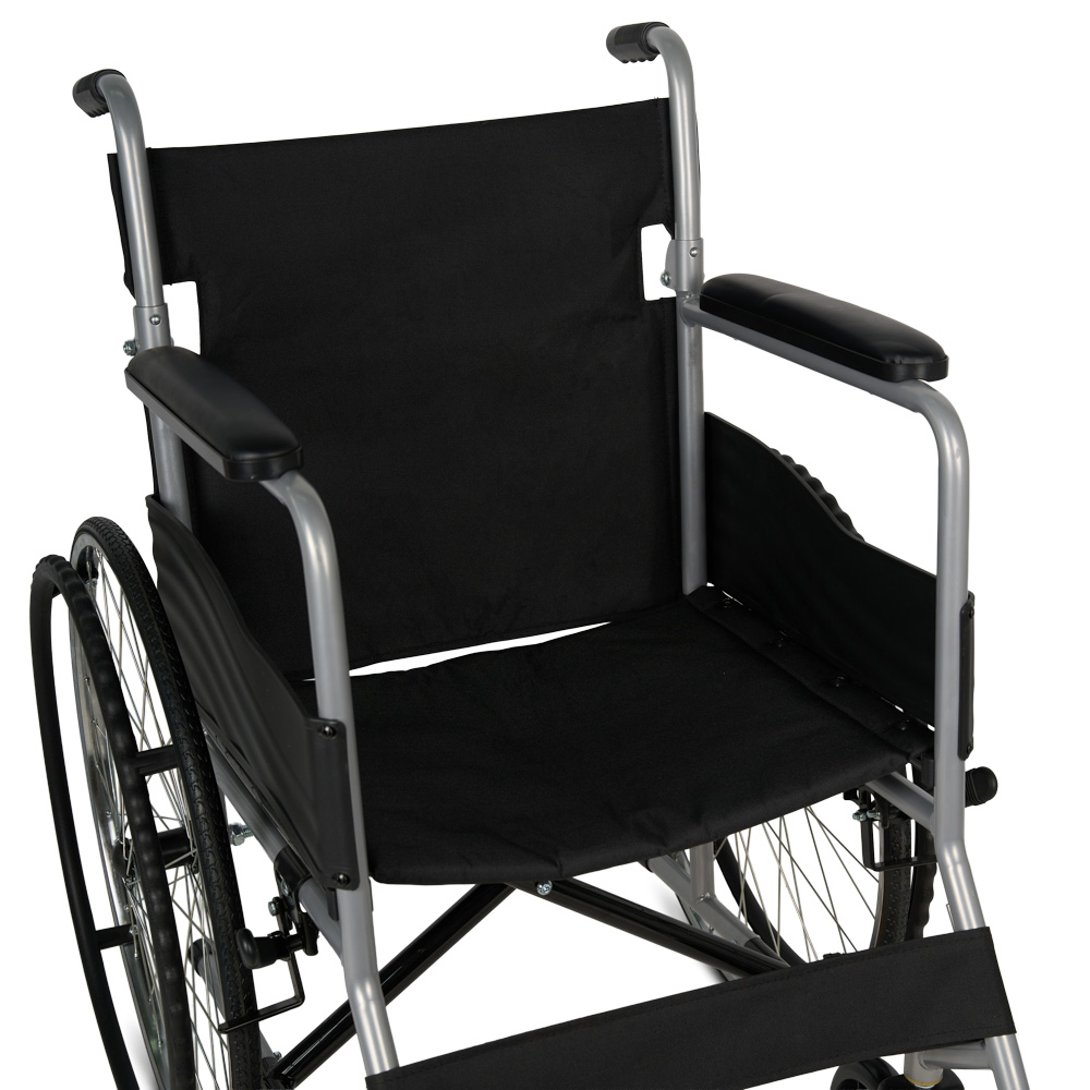 Механическое кресло-коляска KR 007 Armed имеет складную раму, регулируемые подножки и пневматические задние колёса. Для дополнительного комфорта коляска оснащена опорой для голеней и мягкими накладками на подлокотниках.