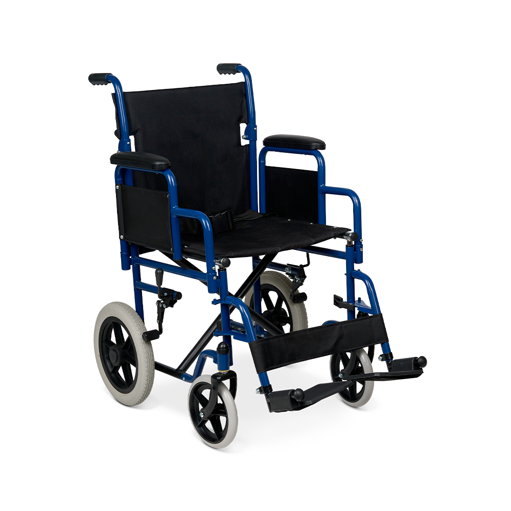 Кресло-коляска Армед KR 030C с цельнолитыми колёсами, съёмными подножками и складной рамой, предназначенная для использования в помещении и коротких прогулок по ровному дорожному покрытию.