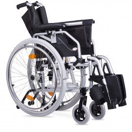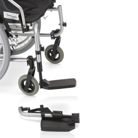 Оснащена стояночными тормозами, съемными антиопрокидывающими устройствами на кнопочной фиксации, дополнительными малыми колесами, ремнем безопасности для ног - опция, наличие уточняйте у консультанта.