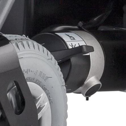 Инвалидная коляска с электроприводом, с нескладной рамой и пневматическими колесами.