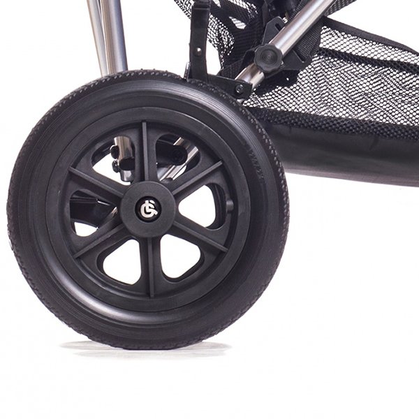 | Колёса задние, быстросъемные | Коляска комплектуется корзинкой для вещей | Съемный капюшон с прозрачной вставкой |