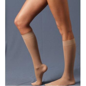Компрессионные чулки предназначены для создания определённого давления на глубокие вены по всей длине ног. Они не позволяют сосудам растягиваться и являются дополнительной опорой для стенок сосудов. Чулки и компрессионные колготки следует применять при затруднённом оттоке венозной крови в ногах.