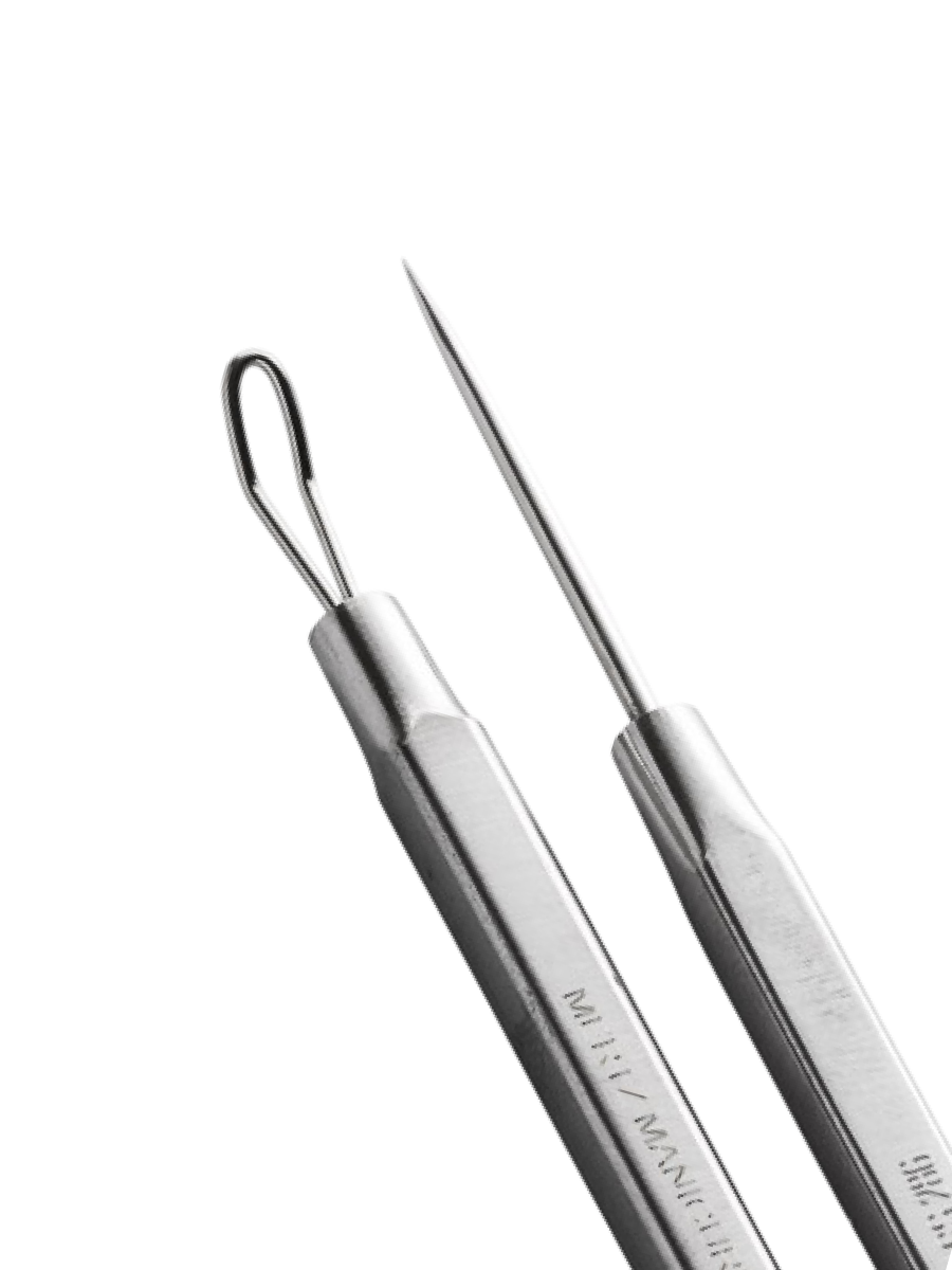 Экстрактор имеет две рабочие стороны - косметологическая петля и игла Видаля.
