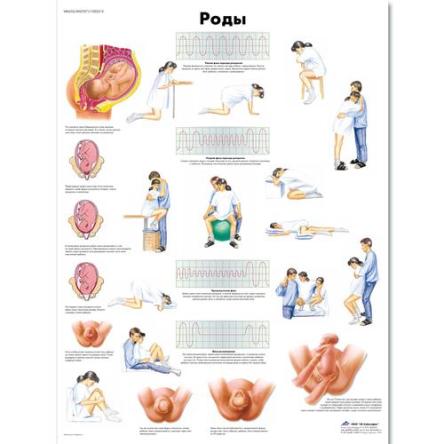Плакат "Роды" для профильных учебных и медицинских заведений. Наглядно отображает этапы подготовки женщины к родам.