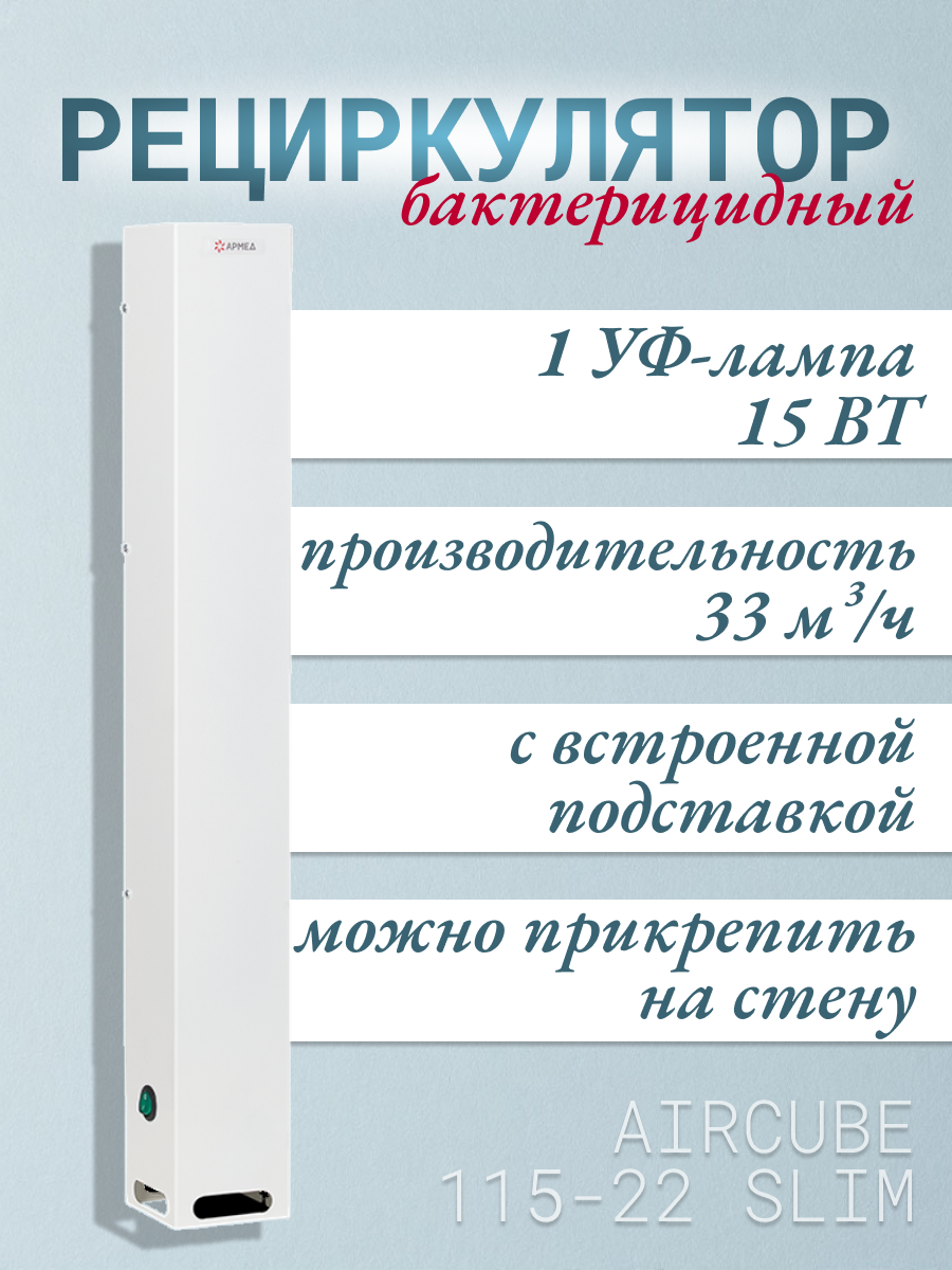 Рециркулятор бактерицидный Армед Aircube 115-22 SLIM - простой и удобный прибор, очищающий воздух в помещении от вирусов и бактерий.