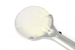 Данная модель лупы оборудована встроенной подсветкой. Подсветка состоит из трех светодиодов, которые экономичны в использовании, поскольку потребляют очень мало энергии. Освещение распространяется по всей поверхности равномерно и имеет приятный для глаз оттенок, что очень важно при длительном использовании прибора. Питание происходит от двух батареек типа АА, которые входят в комплект.