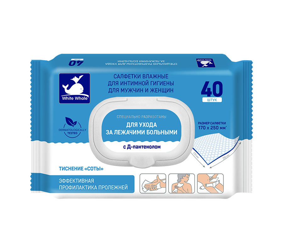 Влажные салфетки White Whale предназначены для ухода за кожей лежачих больных. Незаменимы для быстрого и удобного очищения кожи без использования воды и моющих средств.