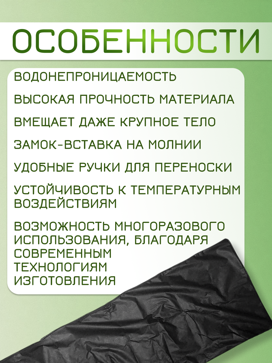 Патологоанатомический мешок с ручками и с замком типа “молния” по центру. Мешок изготовлен из спанбонда.