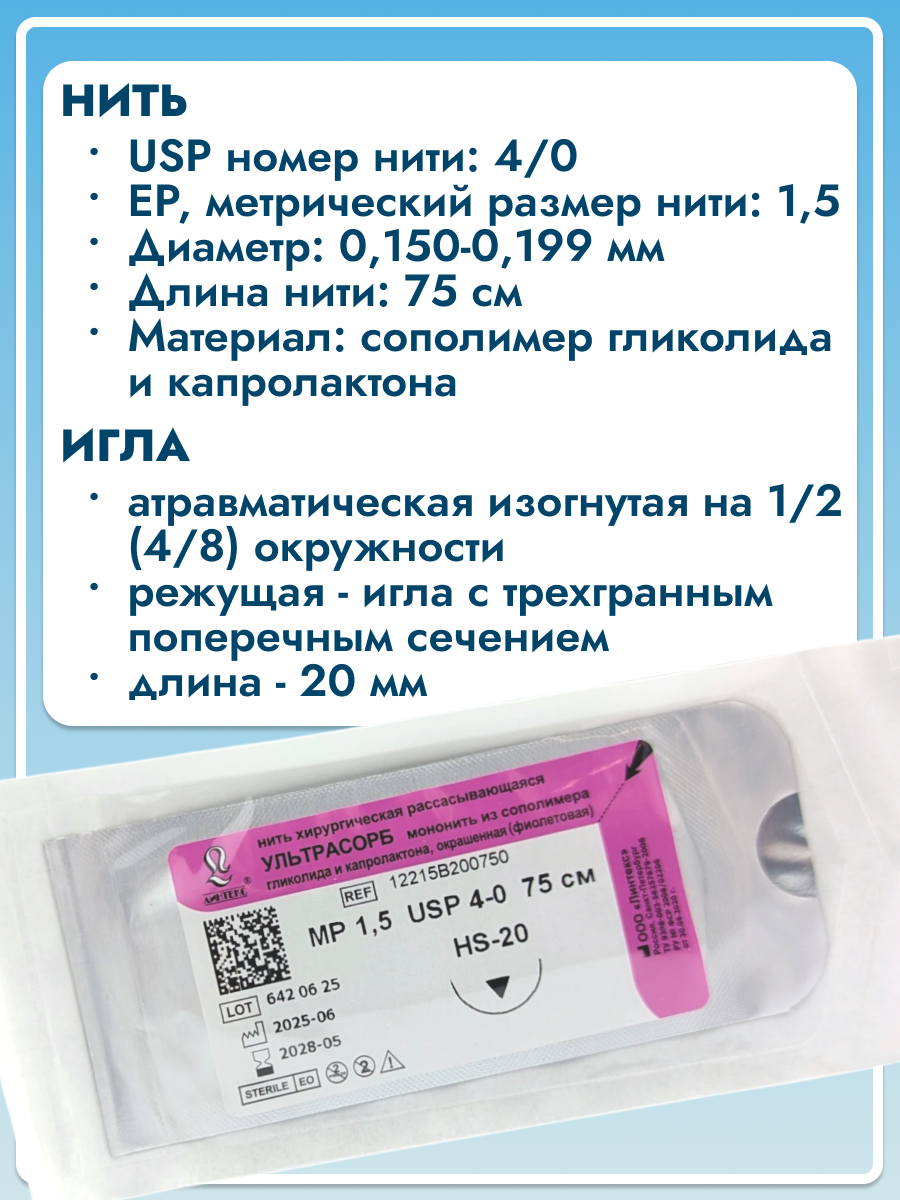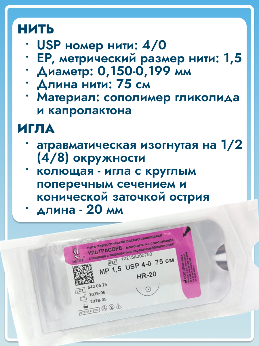 УЛЬТРАСОРБ - рассасывающиеся мононити из сополимера гликолида и капролактона.
